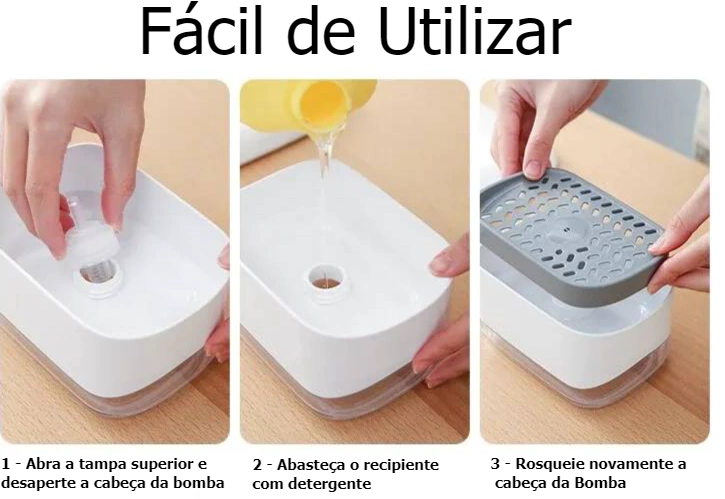 Mantenha as mãos limpas! O suporte esponja permite a higienização sem tocar no dispensador de sabão.