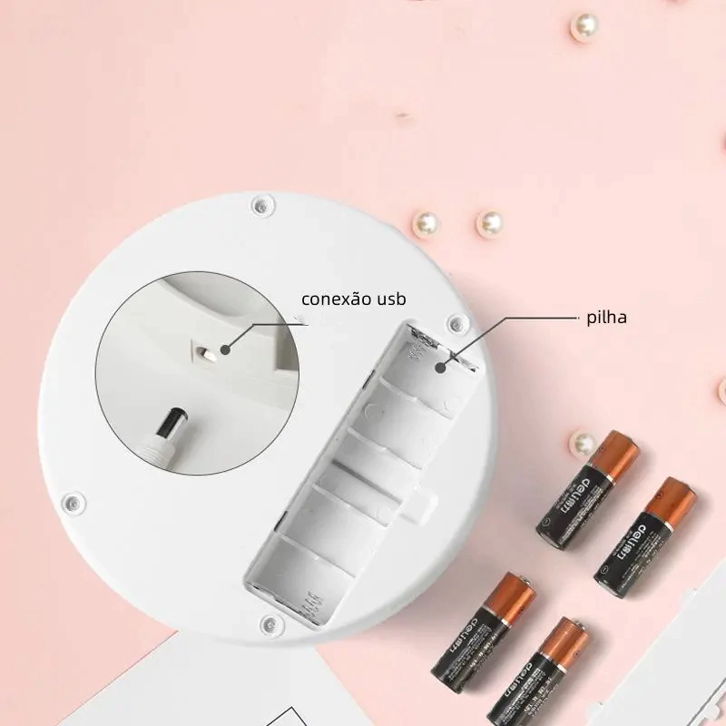 Amplie sua beleza instantaneamente com o Espelho de mesa Portátil LED 10x. Veja cada detalhe do seu rosto com clareza, tornando sua rotina de maquiagem, barbear ou cuidados com lentes de contato impecável. Realce suas características e eleve sua autoestima a novos patamares.