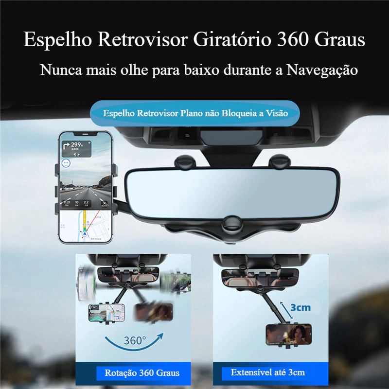 Com o GiroCell: O Suporte Universal Inteligente Veicular 360°, fixado firmemente no seu espelho retrovisor, você desfrutará de:
