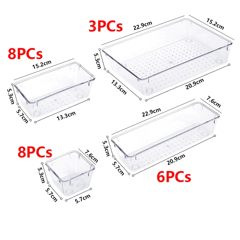Transforme a bagunça em ordem instantaneamente! Os Organizadores em Acrílico são perfeitos para gavetas, armários, geladeiras, prateleiras e muito mais. Eles irão manter tudo no seu devido lugar, o que além de organização, proporcionará um amplo espaço para armazenar todos os seus itens.