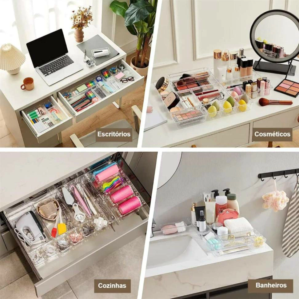 Elimine e Transforme AGORA com facilidade e elegância essa Desordem com o nosso Kit de Organizadores em Acrílico Premium Modular.