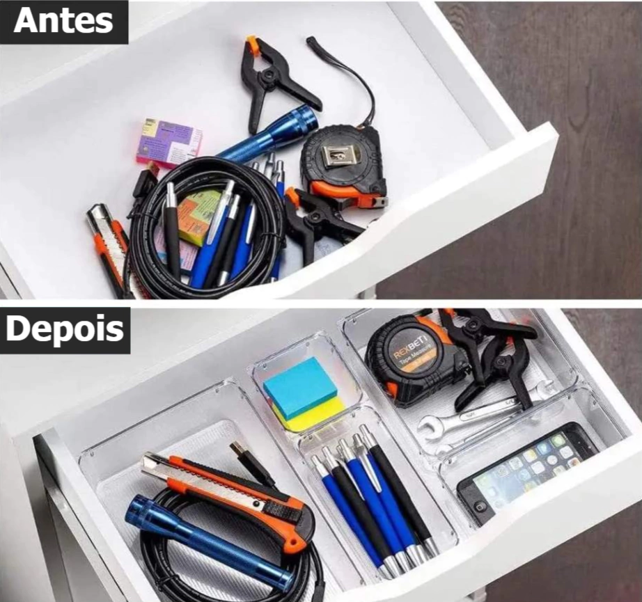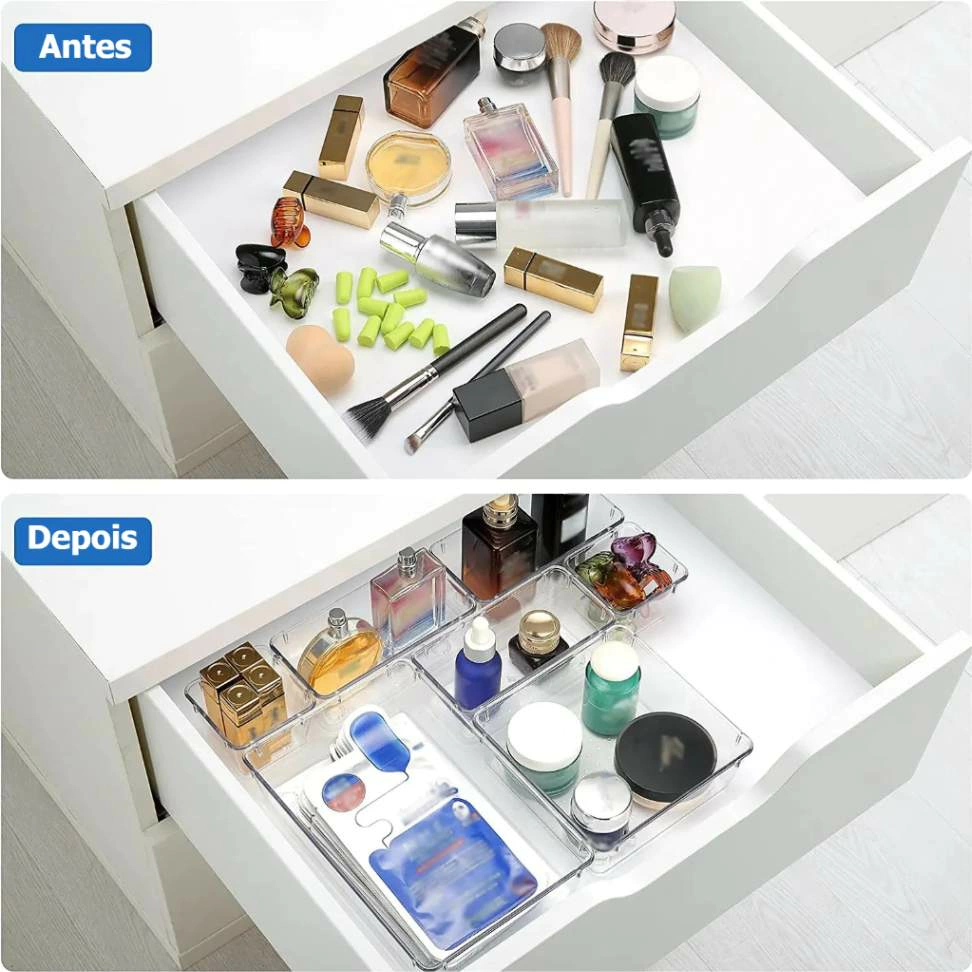 Transforme a bagunça em ordem instantaneamente! Os Organizadores em Acrílico são perfeitos para gavetas, armários, geladeiras, prateleiras e muito mais. Eles irão manter tudo no seu devido lugar, o que além de organização, proporcionará um amplo espaço para armazenar todos os seus itens.
