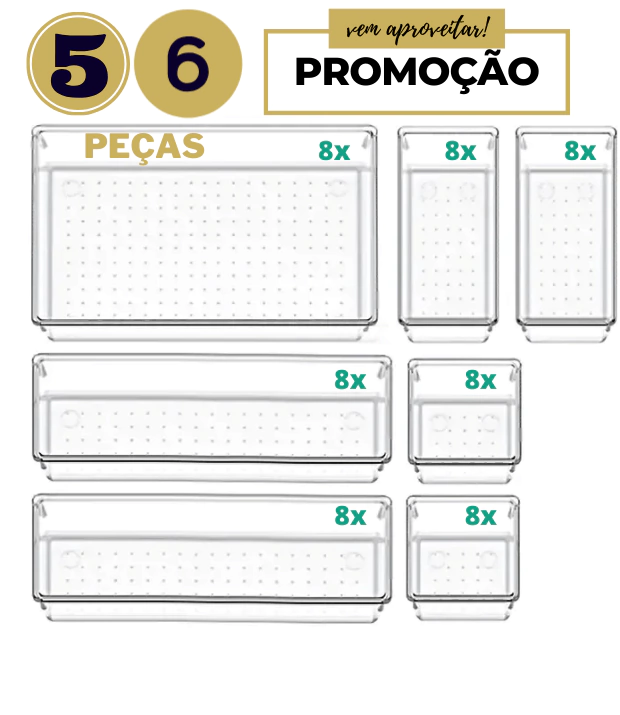 Kit 1 | 07 x Organizadores em Acrílico Premium | Transparente Ou