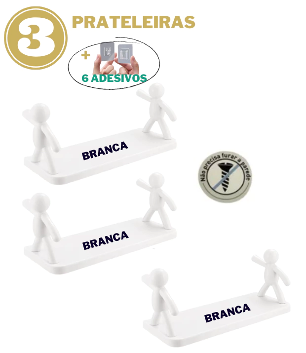 Todos os Kits acompanham os adesivos para você fixar as suas prateleiras.