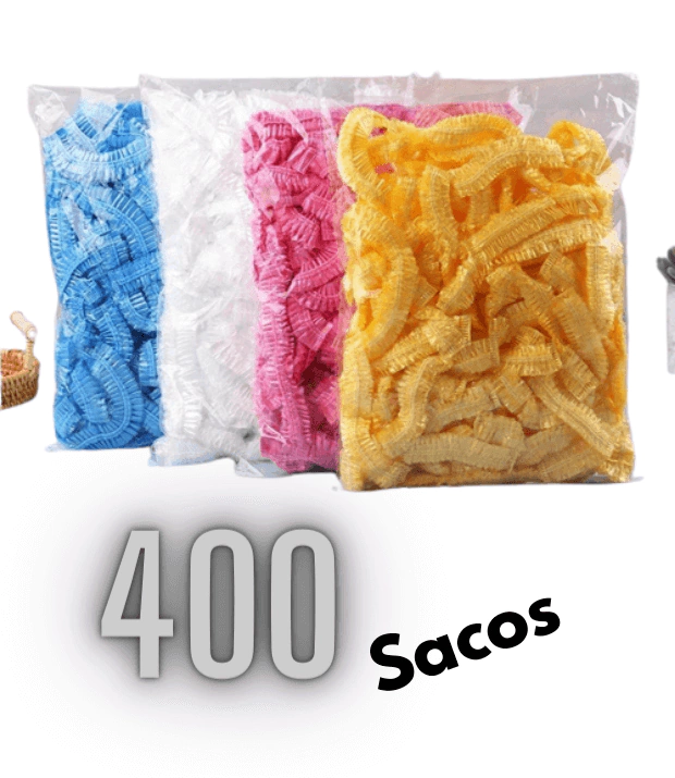 400 Unidades de Saco Plástico Descartável (Transparente, Amarelo, Azul e Rosa)